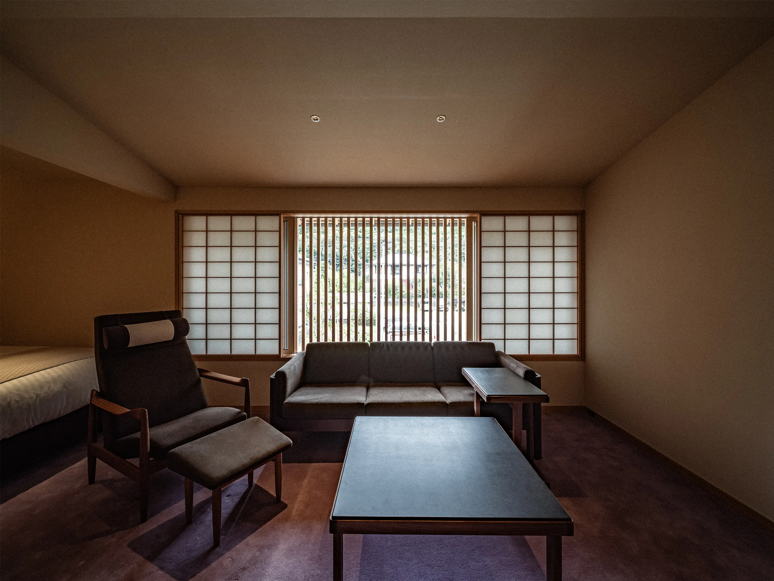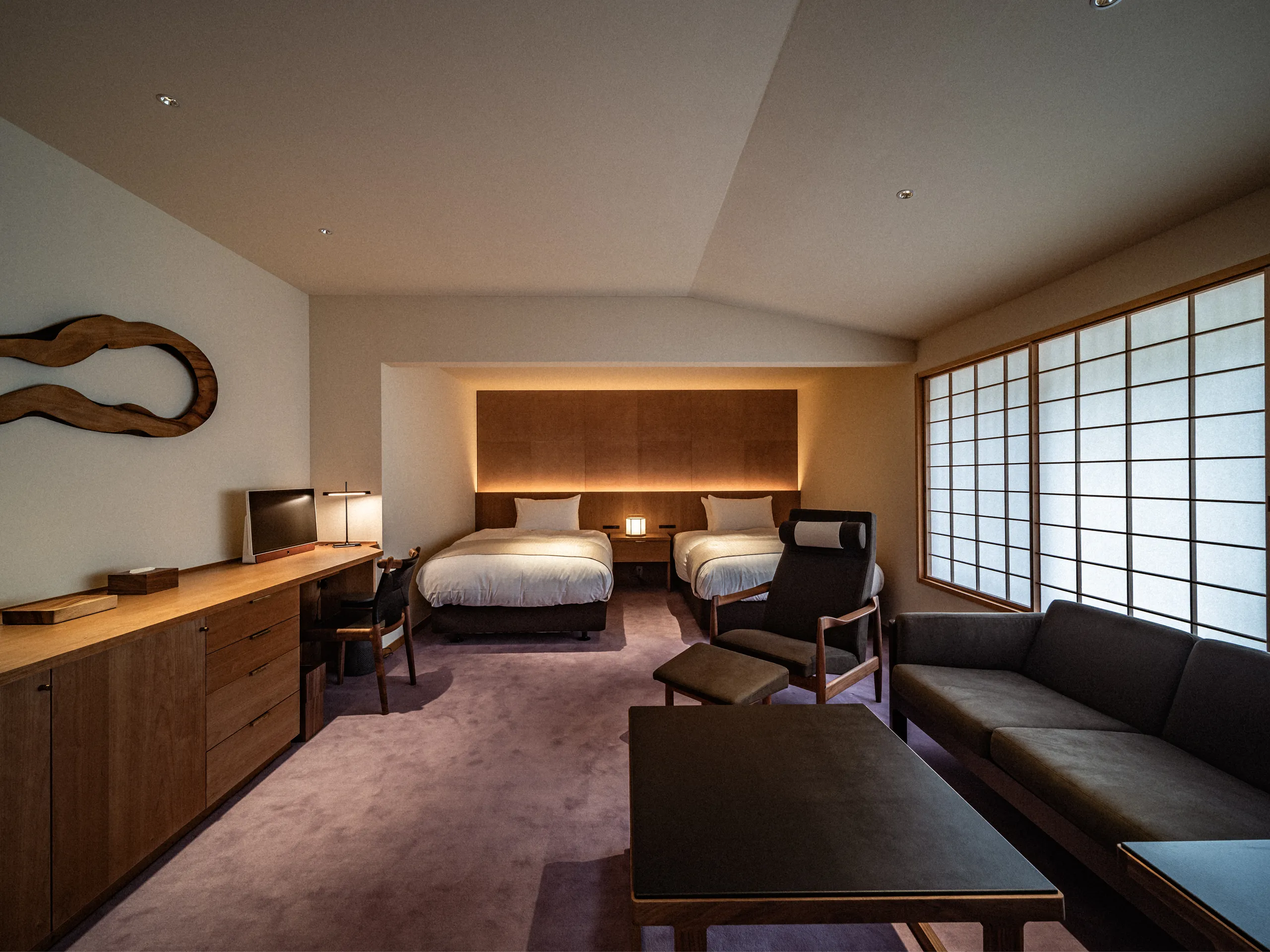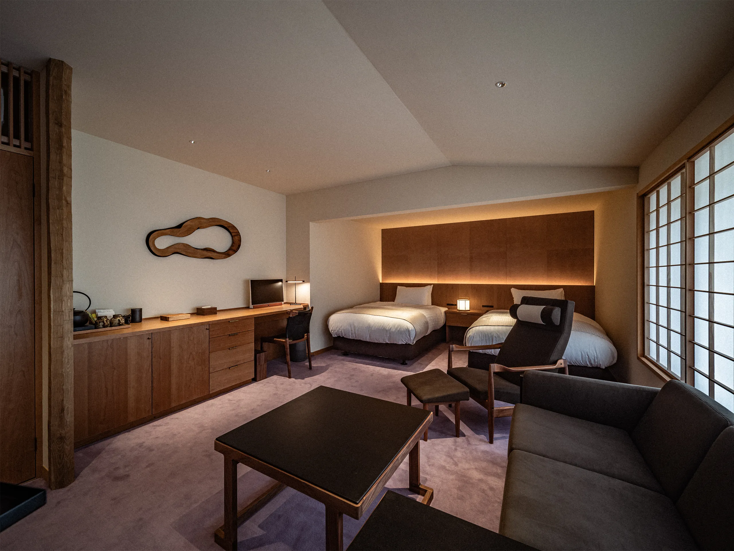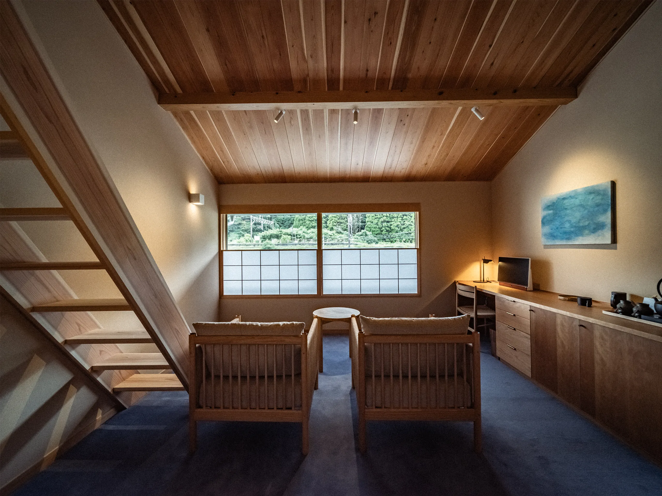 洗面 / シャワーブース / トイレ (ウォシュレット) / Wi-Fi / 冷蔵庫 / 浅型カウンター /ミニテーブル / チェア 2 脚 / ミニバー / 高野薪風呂 / 水風呂 / サウナ / デイベッド /全室禁煙